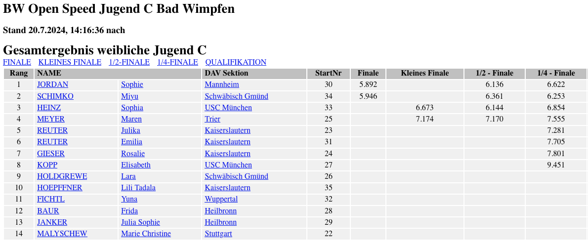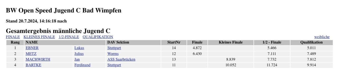 Ergebnislisten C-Jugend Mädchen & Jungen